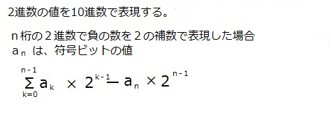 ・コンピュータによる負の数の表現には、2の補数が良く使われす。