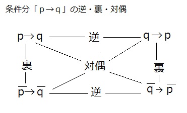 | 連言命題 | 命題「pかつq」 | p⋀q | 命題p、qともに真のとき真、それ以外は偽 |