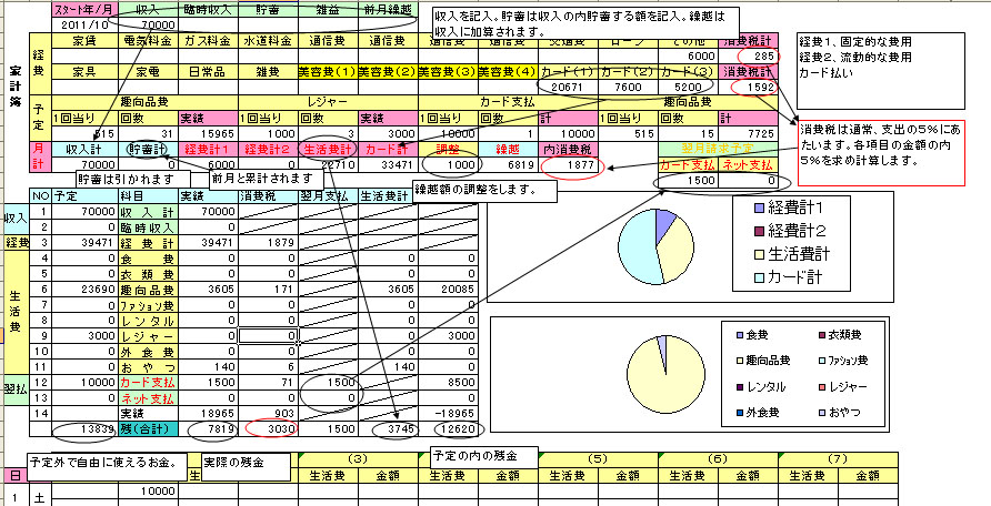 月に決まって使う。例えば、食費等(生活費の科目)を回数で計上することが出来ます。